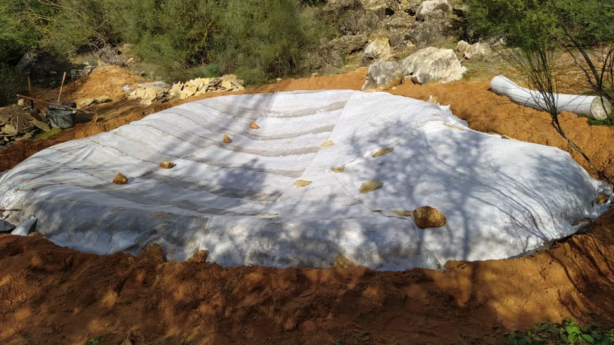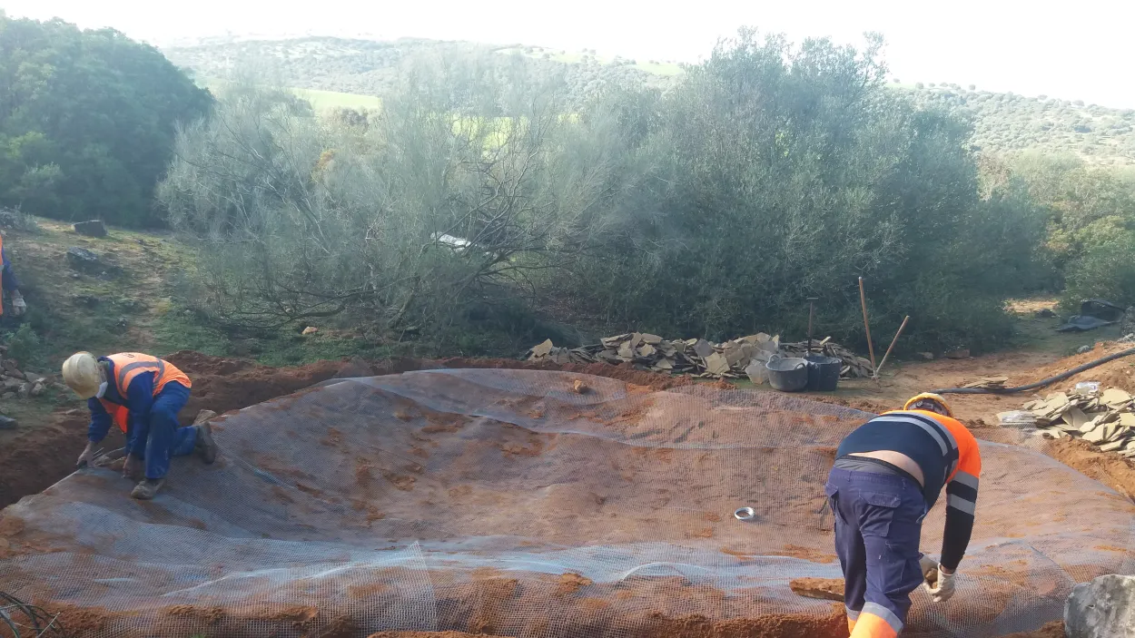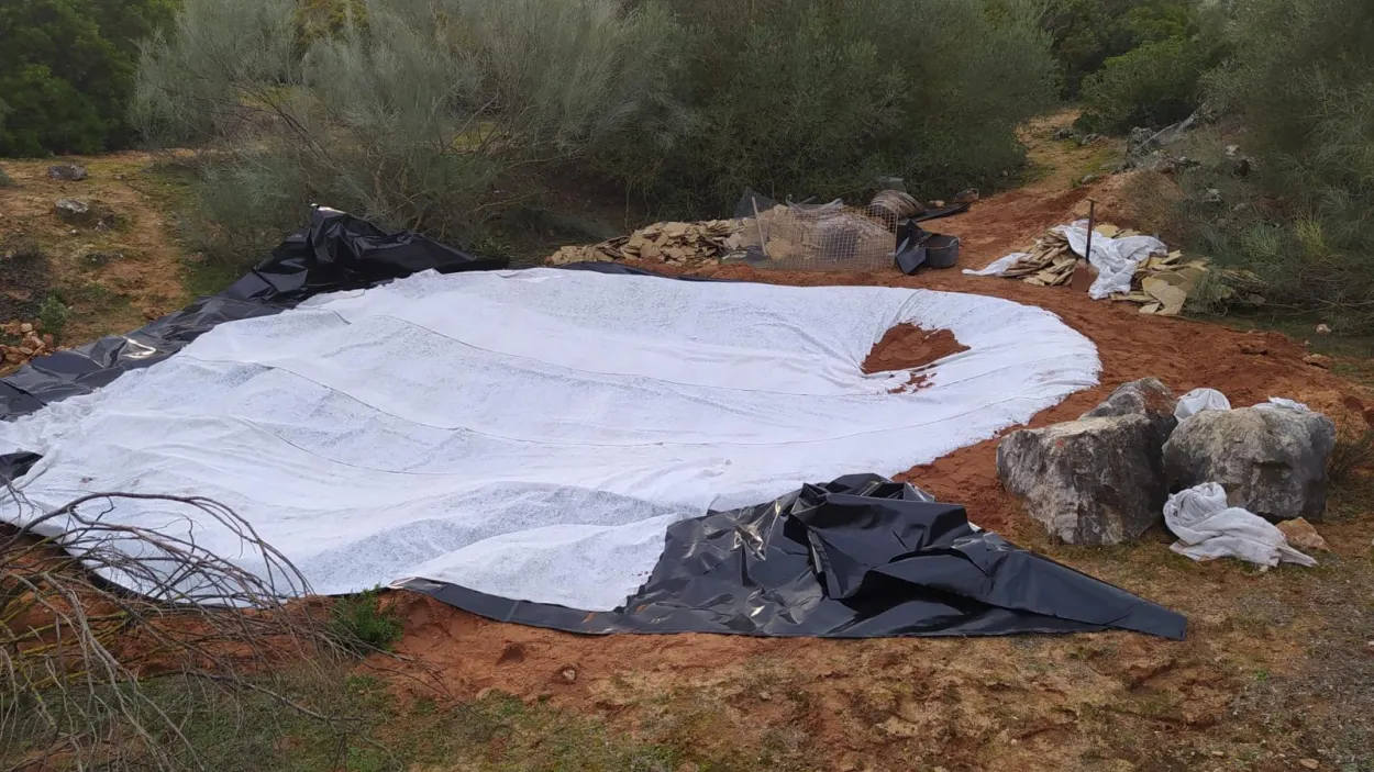 - Seguidamente se ha incluido una capa impermeable constituida por un plástico de alto gramaje y encima de esta otra capa de geotextil.