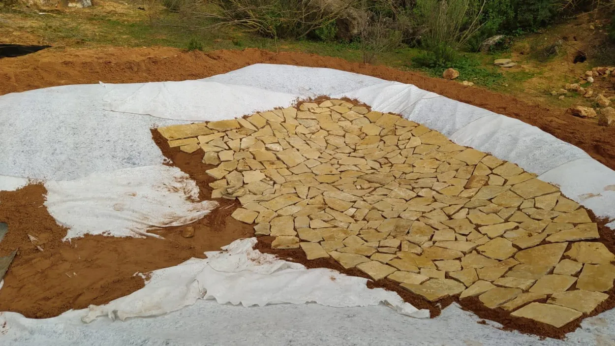 - Por último, se ha dispuesto una capa de arena procedente de la excavación, de unos 5 cm de espesor, y se ha terminado con una capa de piedra, con forma de laja.